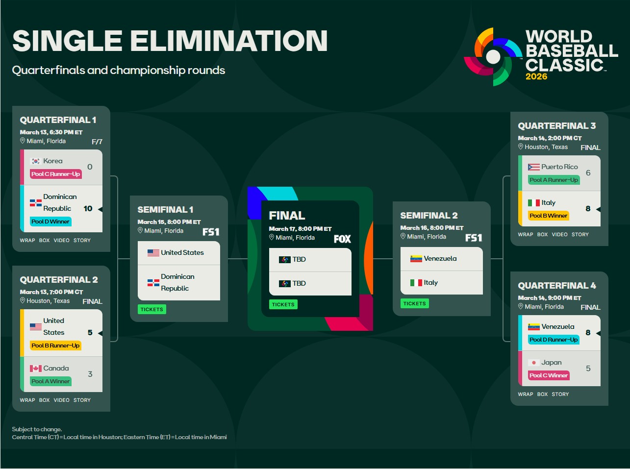 대진표의 인위적 조정: WBC 조직위원회는 조별 예선 성적과 상관없이 미국과 일본이 8강에 진출할 경우, 두 팀이 결승전 전까지는 절대 맞붙지 않도록 대진을 고정하는 방식을 취해왔습니다. 이는 가장 강력한 우승 후보이자 흥행 카드인 두 나라를 마지막 무대까지 보존하려는 상업적 전략입니다.
